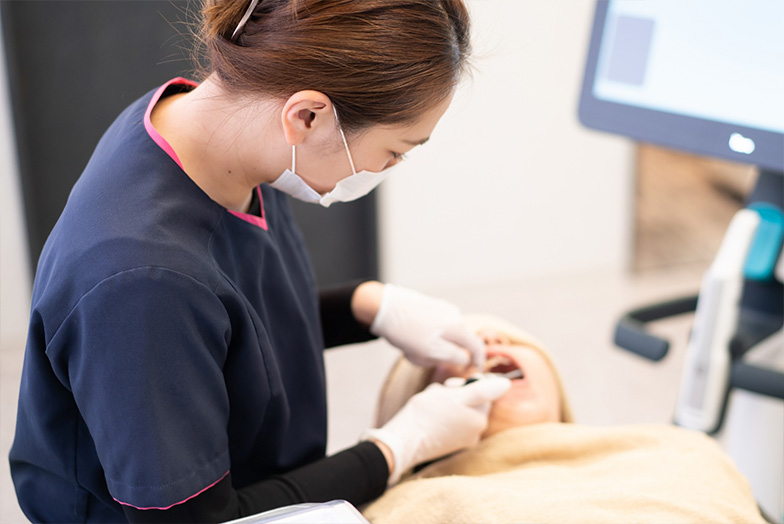 治療を開始する前に、レントゲン撮影や虫歯検査などを行い、お口の状態を検査します。虫歯や歯周病が発見された場合は、まず先にこれらの治療から行います。